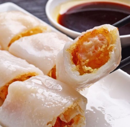 人気商品の「海老入り揚げ腸粉」は、2つの食感が楽しめてクセになると大好評!プルプル食感が特徴の腸紛の中には、サクサクに揚げた口の中で風味が広がる海老のすり身が包まれております。軽く醤油をつけて、とぅるんっとお召し上がりください♪