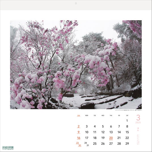 3月:「雪とアカヤシオ」(フォトコンテスト2015受賞作品 大畠 繁さん)