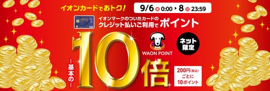 毎週末(日程は変動します)、イオンカードにてお支払いいただくと、WAON POINTが基本の10倍となるさらにお買い得なキャンペーンを実施します。