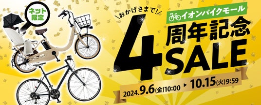 【自転車ECサイト 4周年記念セール】イオンバイクモール 大型セールを9月6日(金)午前10:00から10月15日(火)午前9:59まで開催
