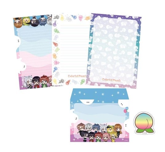 3種類の便箋が3枚ずつ合計9枚と封筒3枚、シール4枚が入ったレターセットです。