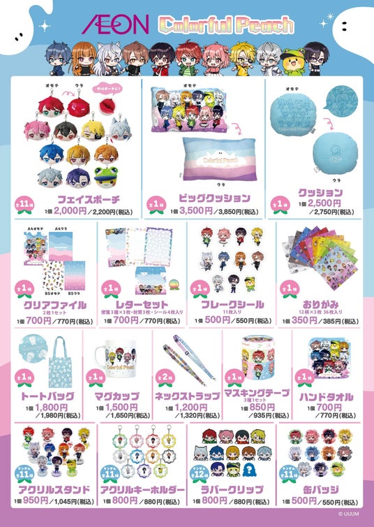 イオンは10月18日(金)、全国の「イオン」「イオンスタイル」※1)など約390店舗のテレビゲーム売場等にて、大人気動画クリエイター「カラフルピーチ」の公式グッズをイオン限定で発売します。「イオンスタイルオンライン」では10月10日(木)15時に予約受付を開始します※2)。