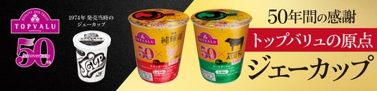 このたび、トップバリュの原点である「ジェーカップ」を、中身も装いも新たに、50周年記念商品として数量限定で発売します。