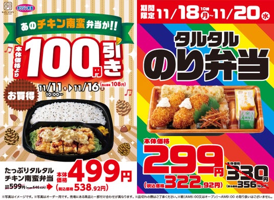 今月もお買い得!チキン南蛮弁当・のり弁当セール