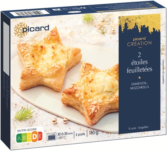 エメンタールチーズとモッツァレラチーズの星形パイ 2個入エメンタールチーズとモッツァレラチーズの2種類のチーズを使用したクリームソースを星形のパイ生地の上にトッピングしました。可愛らしい見た目が食卓を華やかに演出します。
