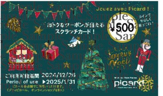 プティピカール店舗、ピカール公式オンラインショップでは、『スクラッチ・クーポン』のプレゼントキャンペーンの開催はしておりません。