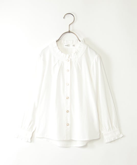 特 長:大人のフリルブラウスに寄せたデザイン。ボタンはゴールド色にしてアップデート。