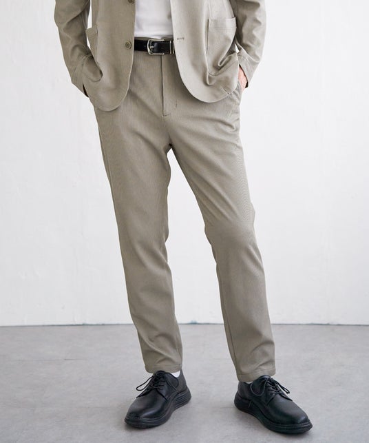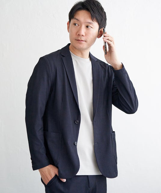 特 長:シンプルな2つボタンデザイン。腰のパッチポケット仕様などオン・オフ兼用使い◎。ikka定番の通勤シリーズ「GOKU楽ワーク」夏版。凹凸感があり、肌離れの良いサッカー素材。ベージュは昨年より淡いカラーに改良。