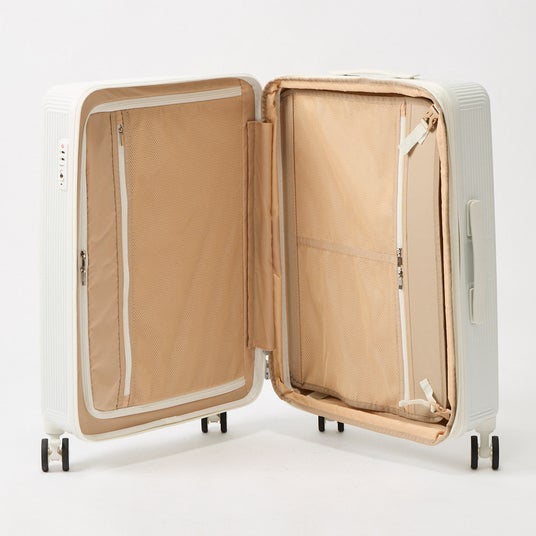 本体外装のファスナーを開けて奥行きを拡張でき、外出先で荷物が増えても安心です。他にも、TSロックや両手でケースを持ち上げやすいように下部にボトムハンドルを搭載など、旅を快適にする機能が付いています。