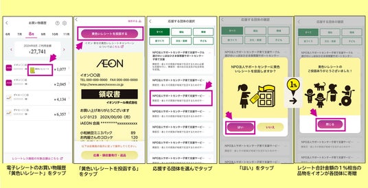 開始から今日まで、紙のレシートを各店舗で投函していただく仕組みでしたが、このたび「iAEON」の電子レシート機能を活用した新たな参加方法が加わります。これにより、買物後に店舗を離れた後でも、応援したい団体をじっくり選んでいただけるなど、場所を問わず「イオン 幸せの黄色いレシートキャンペーン」にご参加いただけるようになります。