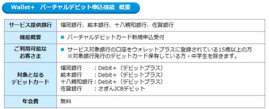 株式会社ふくおかフィナンシャルグループ(取締役社長 五島 久)傘下のiBankマーケティング株式会社(代表取締役社長 明石 俊彦)では、株式会社ジェーシービー(代表取締役 兼 執行役員社長 二重孝好)と連携し、銀行公式無料アプリ「Wallet+(以下、ウォレットプラス)」から対象銀行のバーチャルデビットカード(カードレス)の即時発行受付及びデビットカード情報表示が可能となるサービスの提供を2025年2月26日より開始いたします。(対象銀行:福岡銀行、熊本銀行、十八親和銀行、佐賀銀行)