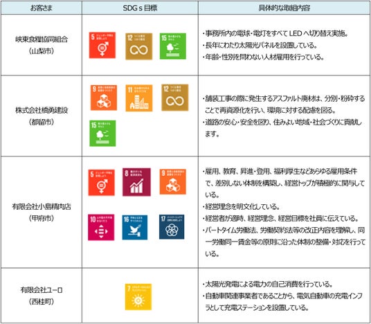 株式会社山梨中央銀行(頭取 古屋 賀章)は、SDGsの目標達成に資する取組みを積極的に行っているお客さまにご利用いただける「山梨中銀SDGs応援ローン」を、2024年10月中に9件実行しました。