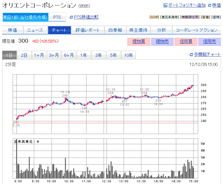 オリコ 信用売り 4,981円の利益昨日大きく値上がりしてた