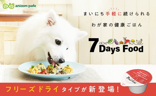 ペット保険シェアNo.1(※)のアニコム損害保険株式会社のグループ会社であるアニコム パフェ株式会社(代表取締役社長 安宅 快、以下 当社)は、愛犬の食事を美味しく、健康的にサポートする人気の「7Days Food(セブンデイズフード)」をもっとお手軽にお楽しみいただくため、「7Days Food Freeze Dry(セブンデイズフードフリーズドライ)」を新たに販売いたします。