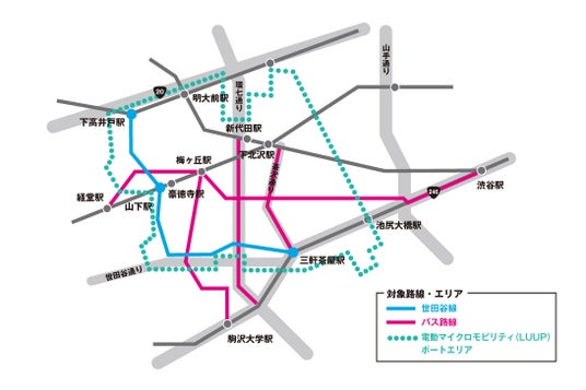 小田急電鉄×京王電鉄×東急電鉄の鉄道3社連携で沿線地域の活性化に向けた実証実験 1月8日から複数のモビリティでエリア内を回遊できるデジタルパス「下北・三茶・下高まちめぐりパス」を1,000枚限定で販売