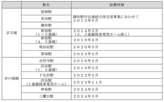 京王電鉄株式会社(本社:東京都多摩市、取締役社長:都村 智史)では、さらなる定時運行、駅ホームにおける安全性向上を目的として、井の頭線は2020年代中頃、京王線は2030年代前半にホームドアの全駅整備を目指しています。