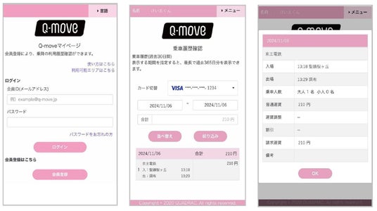 QUADRACのQ-moveサイトにアクセスし、「マイページ」の会員登録手続きが完了しますと確認可能です。