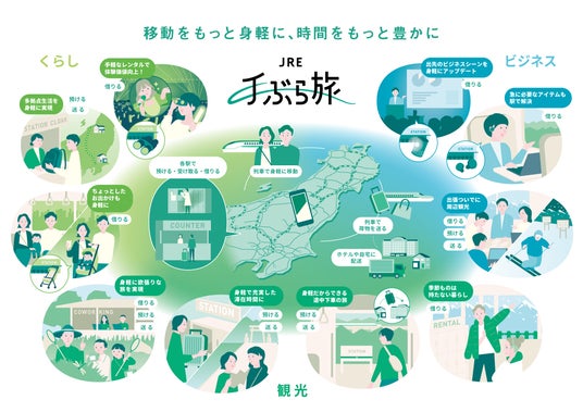 JR東日本グループでは、これまで進めてきた手荷物の当日配送サービスや多機能ロッカーサービスなどに加え、駅で借りて駅で返すレンタルサービス「プレンタ」を本格展開します。これにより、より身軽な観光、出張、ライブやスポーツ観戦等を実現します。今後も更なるサービス拡充を行い、ますます便利で豊かな「JRE手ぶら旅」の世界を実現し、お客さまの移動時間および移動先の滞在時間の価値や、日常生活における時間価値を高めてまいります。