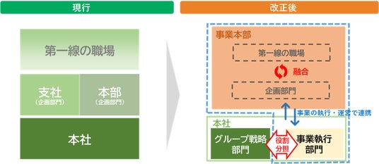 今回の改正で、本社はグループ全体の事業戦略策定を担う部門(グループ戦略部門)と事業運営を担う部門(事業執行部門)に機能を分化させます。事業本部がそれぞれの管轄エリアの経営の基本単位となり、日々の鉄道オペレーションやサービス品質の向上、地域の課題解決に向けて取り組み、本社の事業執行部門がこれをサポートする体制となります。