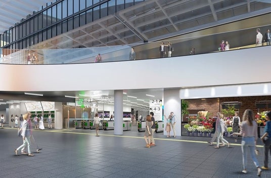 また、地上レベルでは、JRハチ公改札前に最大幅員22m、同じくJR南改札前に最大幅員23mの東西を結ぶ自由通路が整備されることで、利便性が高く・開かれた駅空間が誕生するとともに、東側の宮益坂方面、西側の道玄坂方面へのアクセス性が大きく向上します。渋谷駅の課題であった混雑が緩和され、快適で分かりやすい歩行環境と渋谷らしい楽しい空間を利用者の皆さまに実感いただけることを目指しています。