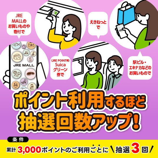 ※JRE POINT WEBサイトに登録したモバイルSuica・Suicaでのご利用や、JRE POINTと連携した「えきねっと」のご利用が対象です。