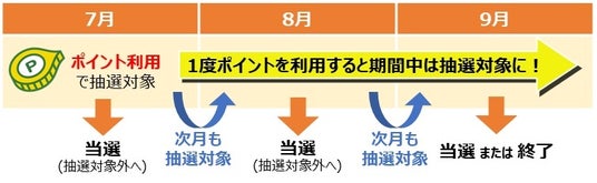Suicaへのチャージや駅ビルでのお買いものなど、JRE POINTをご利用いただいた方に、抽選でポイントが当たります。抽選は毎月実施し、キャンペーン開始から各月の月末までのご利用者が抽選対象となります。