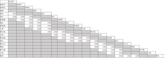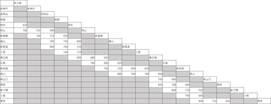 【山陽新幹線開業50周年記念】WESTERポイント超特典きっぷ おねだん【通常期】(単位:円)