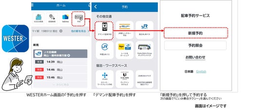 (※1)JR西日本MaaSアプリ「WESTER」はREAが提供するクラウド型AI乗合配車システム「Noruuu-Sharing」と連携し、