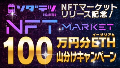 NFTマーケットのオープンを記念して、『ソダテツウォレット』を開設いただいた方を対象に100万円分のイーサリアム(ETH)山分けキャンペーンを実施するほか、数量限定の『寝台特急NFT』の販売や『オリジナルソダテツNFT』の無料配布(フリーミント)を行います。
