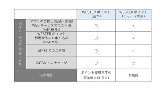 ※注 WESTERポイント(基本)とWESTERポイント(チャージ専用)のつかえるサービスの違いは下記をご参照ください。