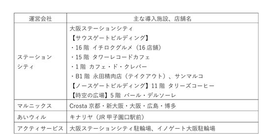 西日本旅客鉄道株式会社(本社:大阪市北区、代表取締役社長:長谷川一明、以下「JR西日本」)とJR西日本ステーションシティ株式会社(本社:大阪市北区、代表取締役社長:平野賀久、以下「ステーションシティ」)、株式会社ジェイアール西日本マルニックス(本社:大阪市淀川区、代表取締役社長:福嶋圭、以下「マルニックス」)、株式会社JR西日本あいウィル(本社:兵庫県尼崎市、代表取締役社長:吉田武史、以下「あいウィル」)、アクティサービス株式会社(本社:大阪市北区、代表取締役社長:平野賀久、以下「アクティサービス」)は、2024年12月1日(日)より、JR西日本グループの駅ナカ店舗等にて、ICOCAのお支払いでWESTERポイントがたまるサービスを開始いたします。