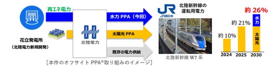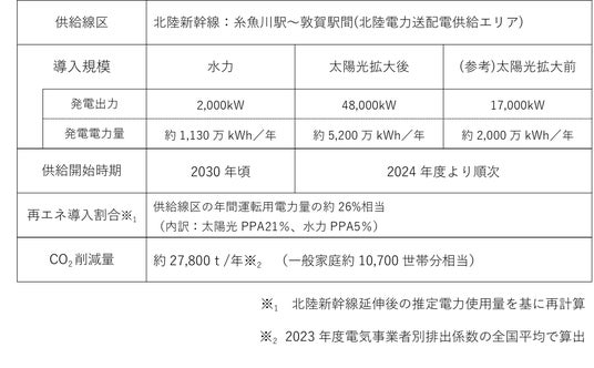 西日本旅客鉄道株式会社(以下、JR西日本)と北陸電力株式会社(以下、北陸電力)は、再生可能エネルギー由来電力(以下、再エネ電力)を北陸新幹線に供給する、オフサイトPPAに関する基本合意書を締結しました。