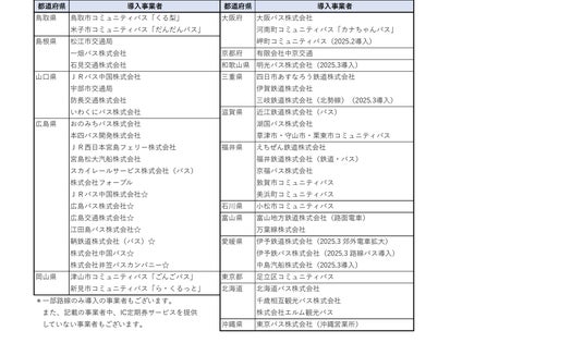 *各導入事業者のWebサイトからもリンクを掲出する予定です