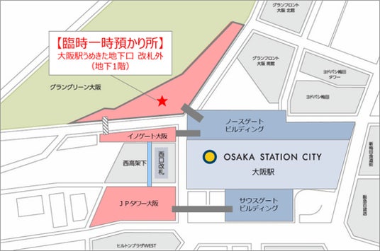 大阪駅:臨時一時預かり所(うめきた地下口)※改札外 営業時間9:00~20:00予定