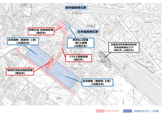 今後は、「JR西明石駅及び駅周辺の安全性と利便性の向上」「地域交流拠点の充実」に向けて、駅及び駅前空間の整備やJR西明石社宅用地での地域交流拠点整備及びマンション開発、駅とまちをつなぐアクセス道路の整備にそれぞれ順次着手していくほか、旧国鉄清算事業団用地でのまちづくりや、地区全体の持続的なエリア価値向上に向けた取組みを共同で検討・推進していく予定です。