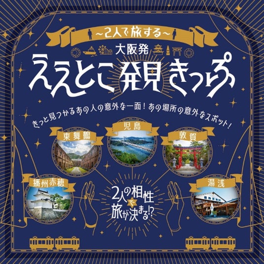 2人の相性診断と確率で決まる運命の目的地から、旅の内容を提案する「大阪発ええとこ発見きっぷを、JR西日本ネット予約「e5489」で発売します。