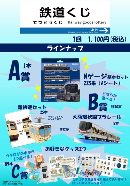 2025大阪・関西万博公式ライセンス商品など、バラエティ豊かな商品を取り揃えます!当店オリジナルの鉄道雑貨が当たる「鉄道くじ」や、駅ホームで利用されている「フロアシート」の受注販売も実施しますので、ぜひご利用ください!