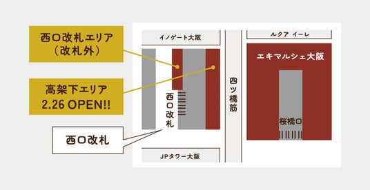 【(株)ジェイアール西日本デイリーサービスネット】大阪駅西口高架下エリア 4店舗が開業!エキマルシェ大阪UMEST(ウメスト) グランドオープンのお知らせ