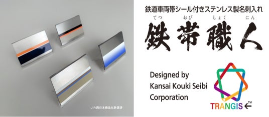 JR西日本グループの関西工機整備株式会社は、鉄道車両のステンレス車体と帯カラーデザインを踏襲した鉄道車両帯シール付きステンレス製名刺入れ「鉄帯職人(てつおびしょくにん)」の製作・販売を5月1日(木)より開始いたします。