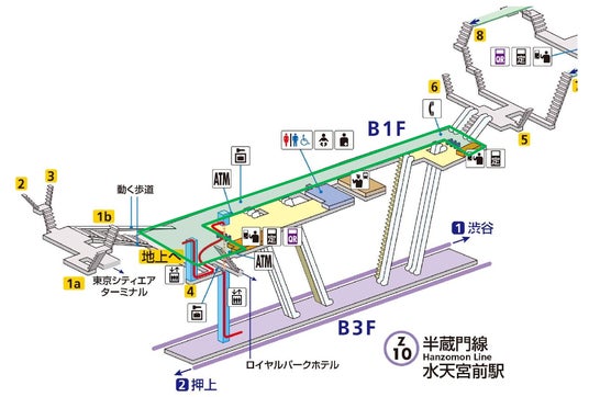 半蔵門線水天宮前駅コンコース(下図緑枠内及びその周辺)