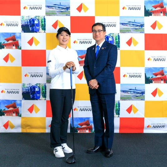 この度、南海電気鉄道株式会社さまからスポンサーを受けることになり、大変光栄に思っております。幼い頃から利用してきた鉄道が、私のプロゴルフキャリアを支えてくださることに感謝の気持ちでいっぱいです。