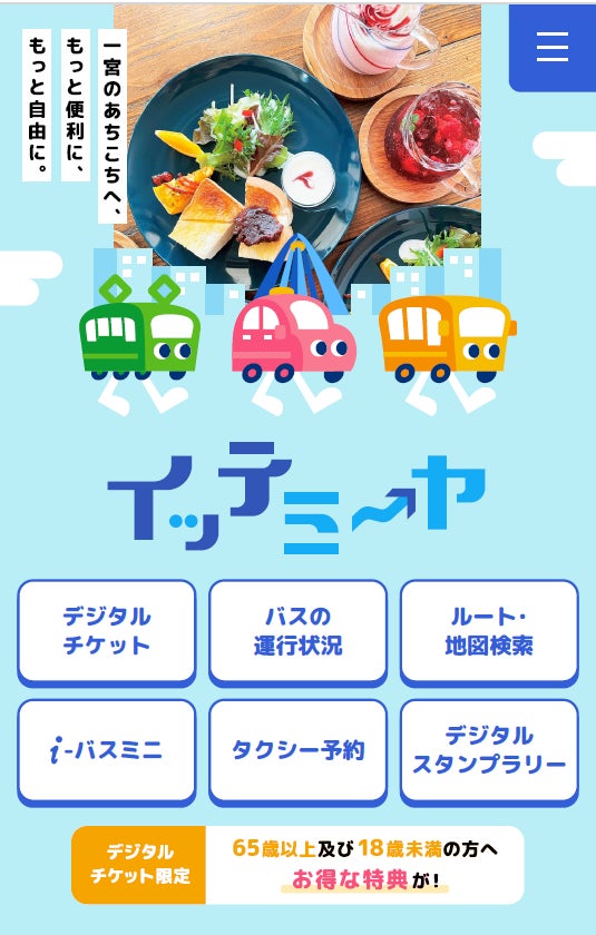一宮地区を運行する「i-バス」の1日乗車券、回数券のほか、名鉄バスを含めた市内全バス路線で利用可能な1日乗車券「一宮おでかけバス手形」をデジタルチケットとして販売します。また、24時間いつでもどこでも購入できます。
