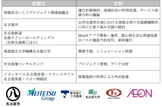 また、名鉄タクシーホールディングス株式会社(愛知県名古屋市中川区西日置二丁目3番地5号 代表取締役社長 浅野 丈夫)は、同エリアにおけるAIオンデマンド交通「Dバス」の運行主体として、電話予約受付および名鉄交通第三株式会社による車両運行を担当します。