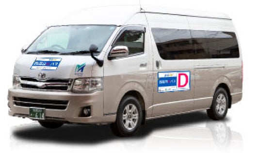 ・「 Dバス」とは、西福田学区周辺を運行する、タクシー(デマンド交通)と路線バス(乗合交通)の長所を掛け合わせた交通モードの名称です