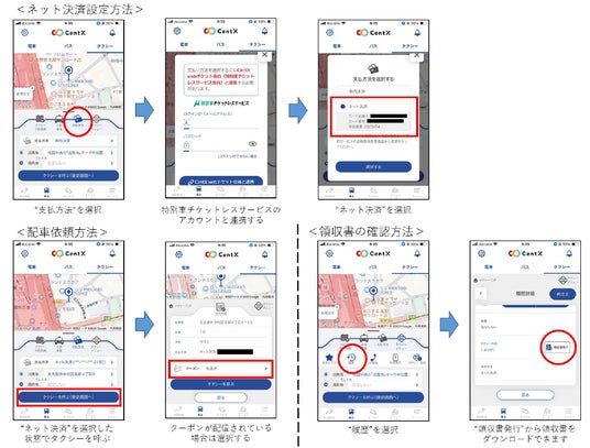 また、タクシー配車機能において、名鉄タクシーグループの名古屋市内6社の配車に対して新たにネット決済サービスを開始します。これにより、事前にクレジットカード情報を登録した上で配車依頼をすると、車内での支払い手続きが不要となり、スムーズに降車できるようになります。