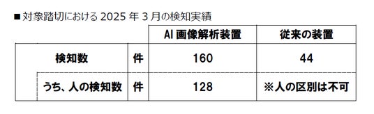 2023年11月の導入以来、今回の踏切監視システムは、これまで大きな不具合もなく稼働しています。従来の障害物検知装置と併設している導入箇所での検知数は従来の装置以上であり異常の検知数は約3倍となっています。