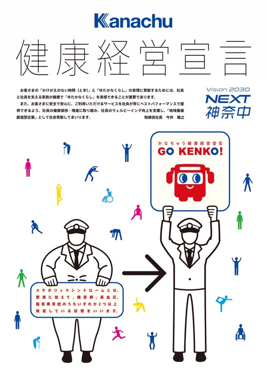 神奈川中央交通株式会社(本社:神奈川県平塚市、社長:今井 雅之)では、本年3月に、社員とその家族の健康が健康経営の根幹であり、社員のウェルビーイング向上を支援し、「地域価値創造型企業」として社会貢献していくことをトップメッセージ「健康経営宣言」として発出しました。