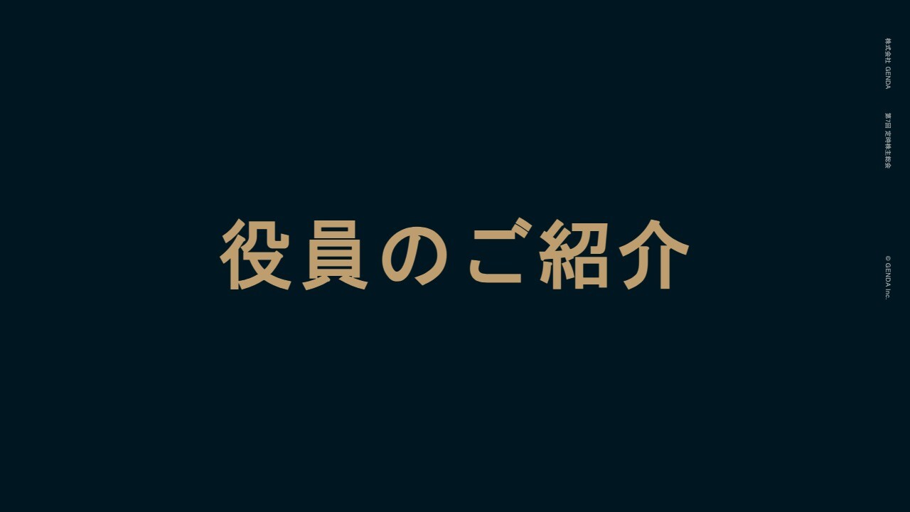 それでは、株式会社GENDA第7回定時株主総会を開会します。本総会の議事の運営については、議長である私の指示に従うよう、ご出席のみなさまのご理解とご協力のほど、よろしくお願いします。