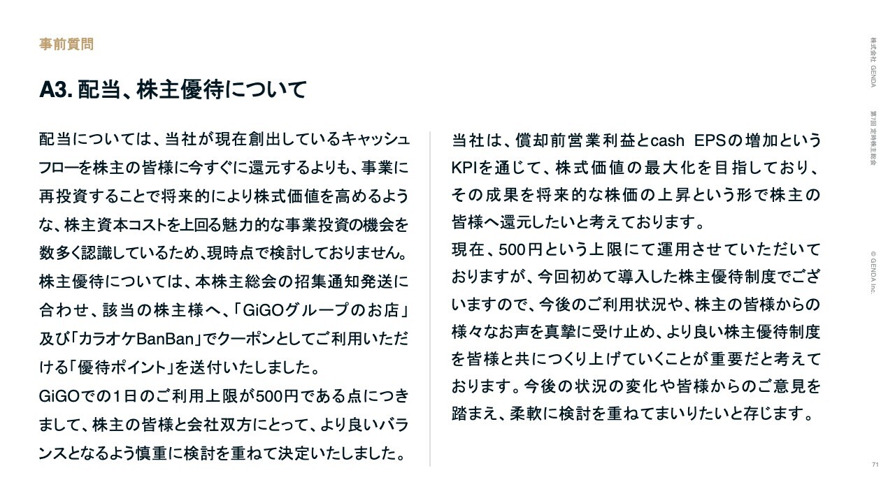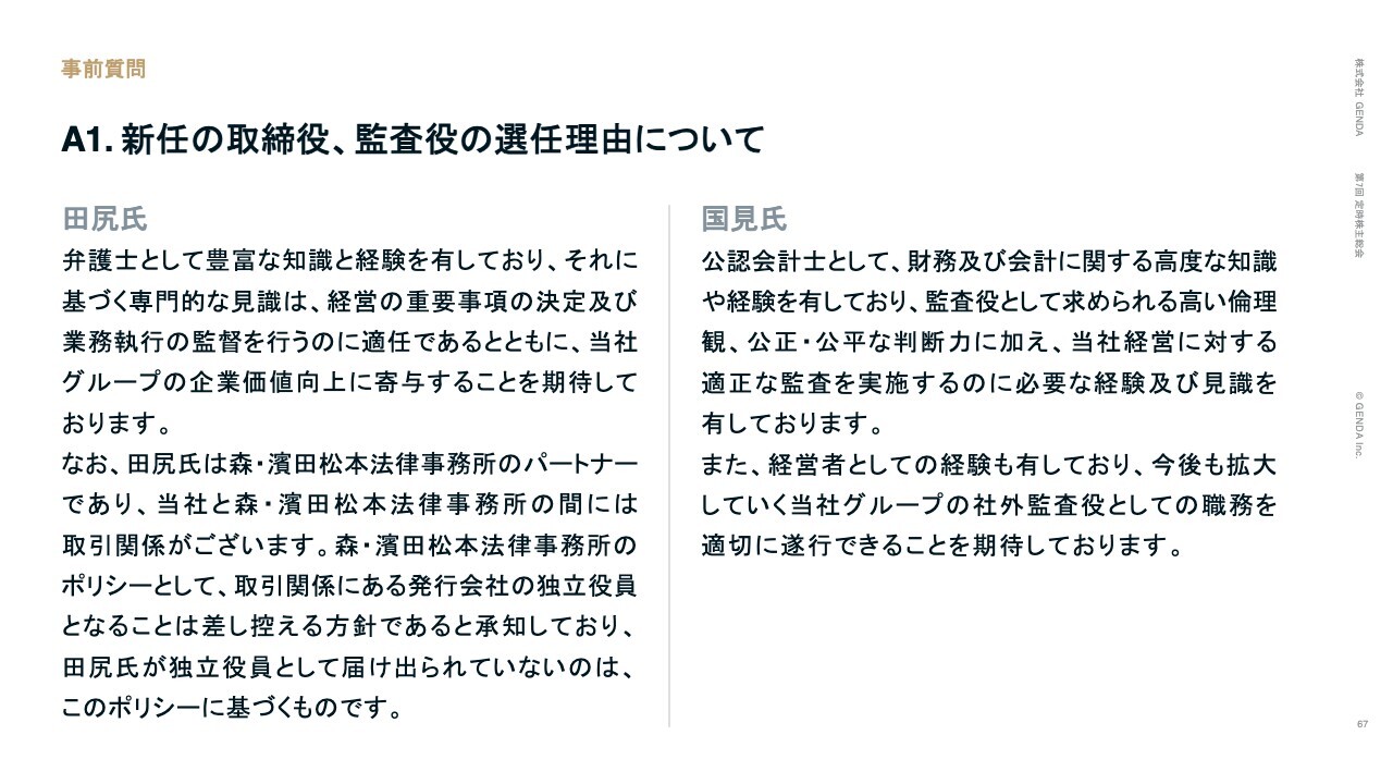 野村彩氏:野村彩です。株主のみなさま、本日は温かいお言葉、厳しいお言葉も含めて多くのご質問、ご意見本当にありがとうございました。これからもGENDAのご支援どうぞよろしくお願いします。