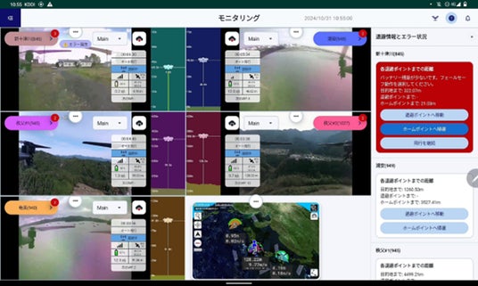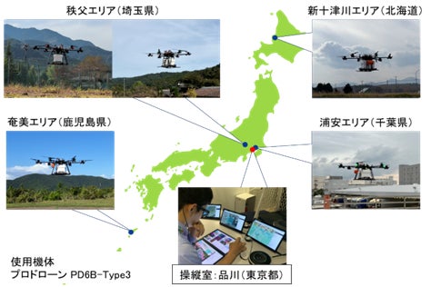 2024年度の本実証では、飛行地点数を4地点に拡大し、1人の操縦者が遠隔操縦により、4地点で5機の同時運航を実現しました。
